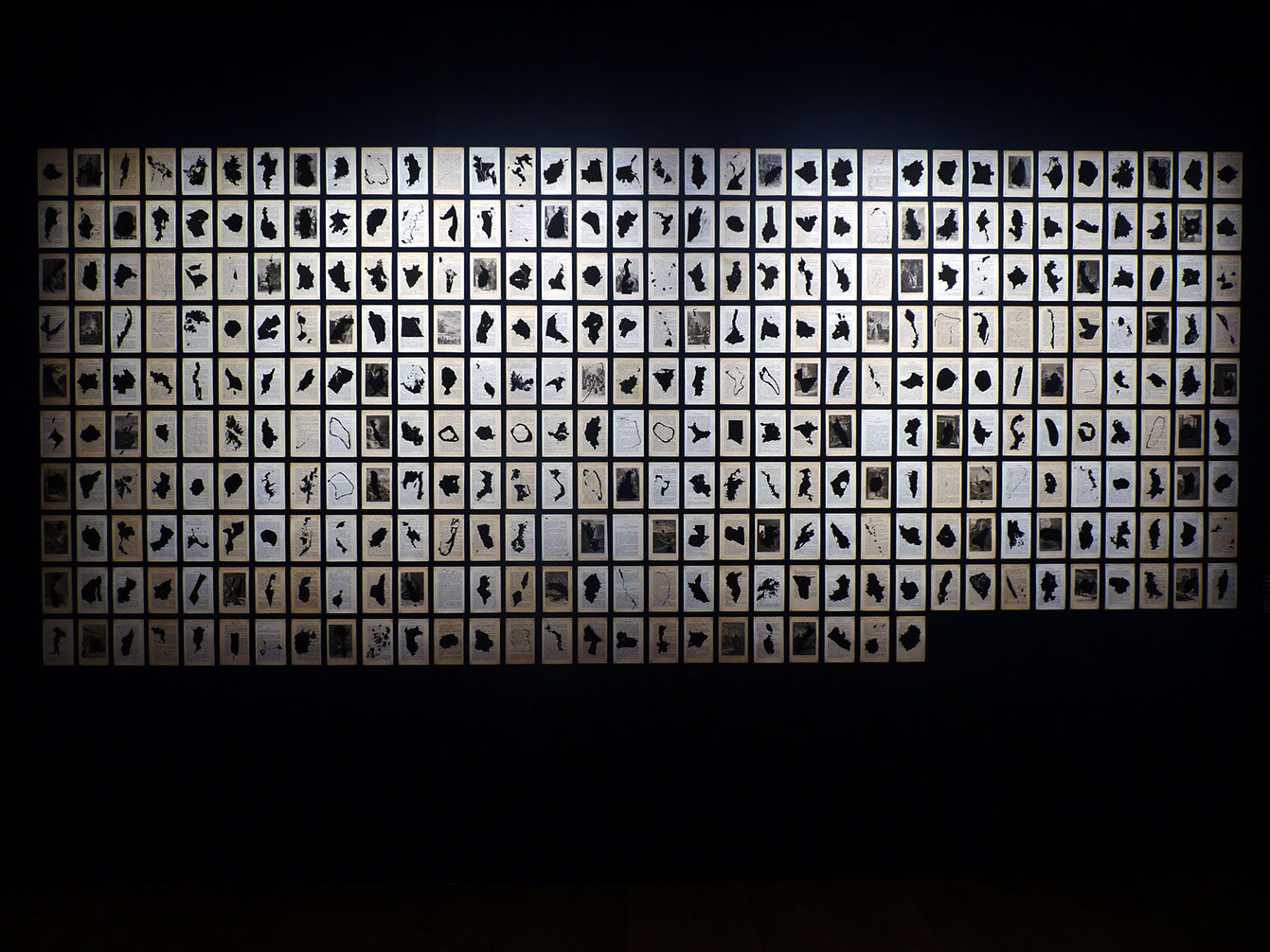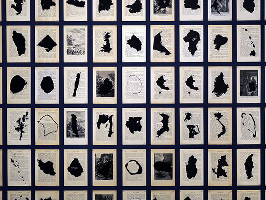 Les Possessions rassemble l’ensemble des pays du monde ainsi qu’un certain nombre d’îles et d’archipels. Les cartes désorientées et imprimées en noir sur les pages du Tour du Monde en 80 jours de Jules Verne, deviennent des formes abstraites, des terres isolées, suggérant une géographie instable des continents.