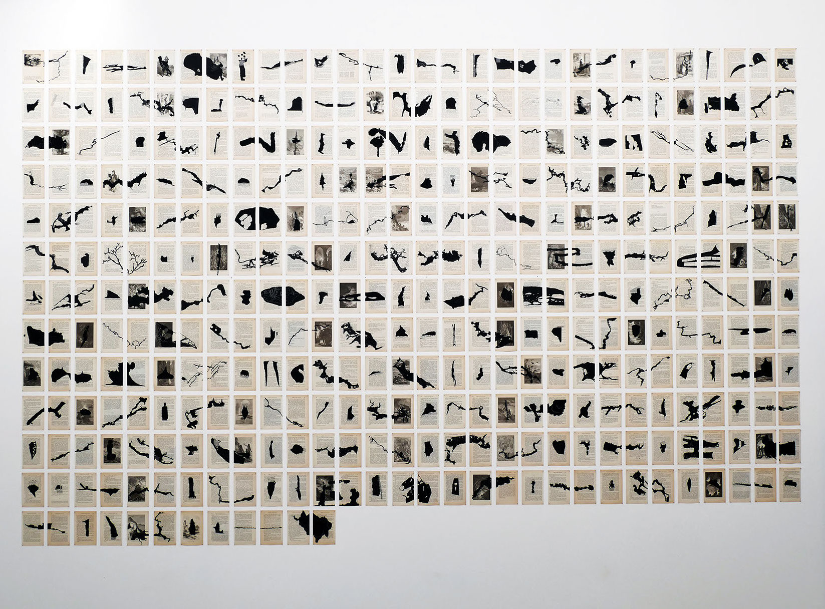 Le titre Les Salons noirs est emprunté au nom donné à la salle des peintures de la grotte de Niaux (Ariège). La grotte de Niaux est la carte d’ouverture de l’installation murale et la salle des peintures est celle qui la clôt.