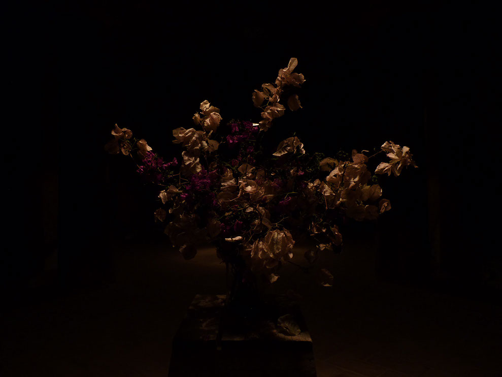 Il me plaît de parsemer mes œuvres de feuilles rose, pourpre, rouge, blanche ou orange.