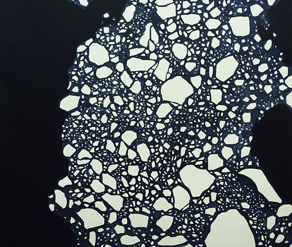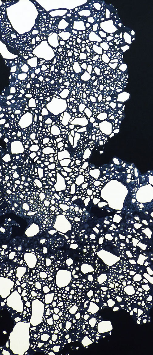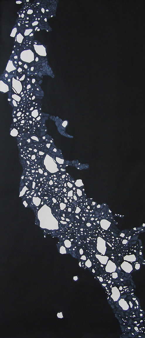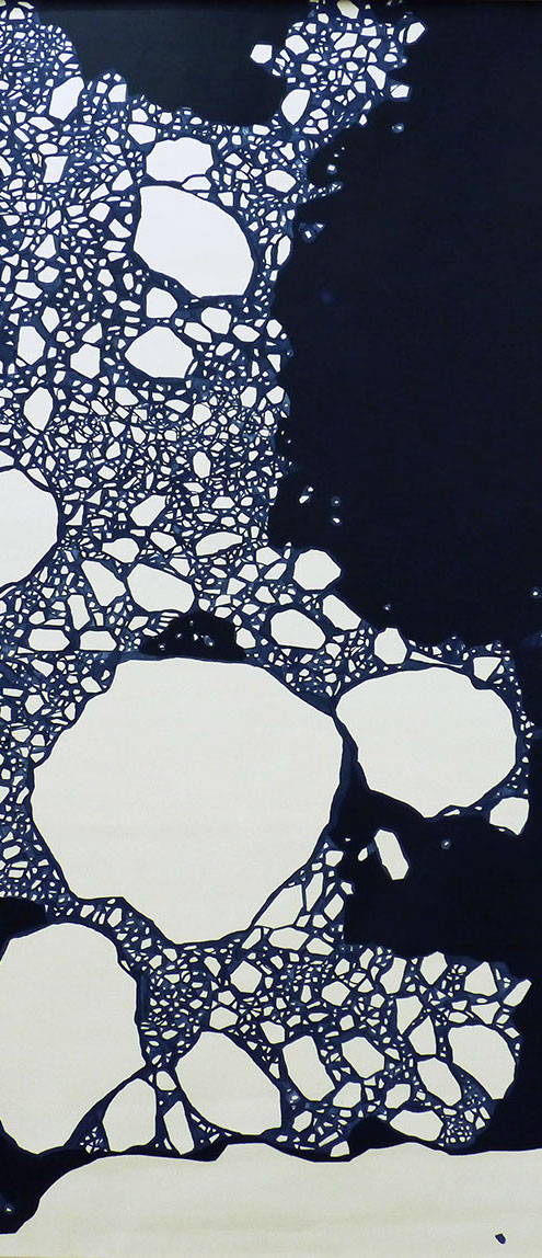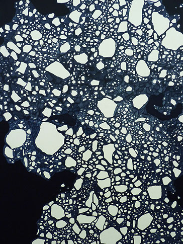 Le triptyique sont des vues satellite plus ou moins réelles de la débâcle de la banquise en Antarctique.
