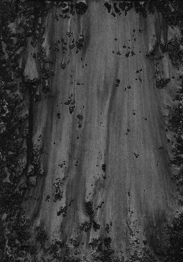 Les eaux obscures évoquent tour à tour la face nord d'une montagne et le sol marin des profondeurs.