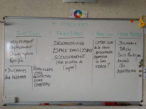 Cet atelier permet d’envisager que ce que je vois et ce que je vis peuvent se transformer radicalement. Il faut pour ce faire, s’organiser, penser ensemble, comprendre qu’une classe se compose de différents groupes qui peuvent se répartir les tâches, les partager et aboutir à un objet commun.